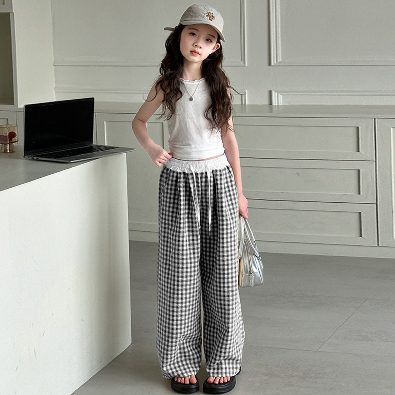 ギンガムチェックパンツは、トレンドを意識したルーズなシルエットが特徴のアイテムです。薄地の素材を採用しており、春夏の軽やかなコーディネートにぴったり。リラックスした着心地で、カジュアルな日常使いから、友達とのお出かけまで幅広くお楽しみいただけます!