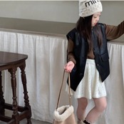 洗練されたスタイルで魅力を引き立てる一着!フェイクレザーベストコート